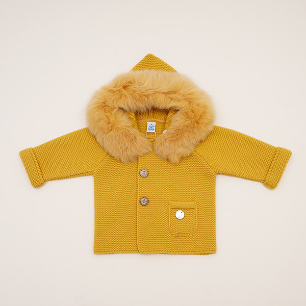 Kapuzen-Strickjacke für Baby und Kleinkind in Senf