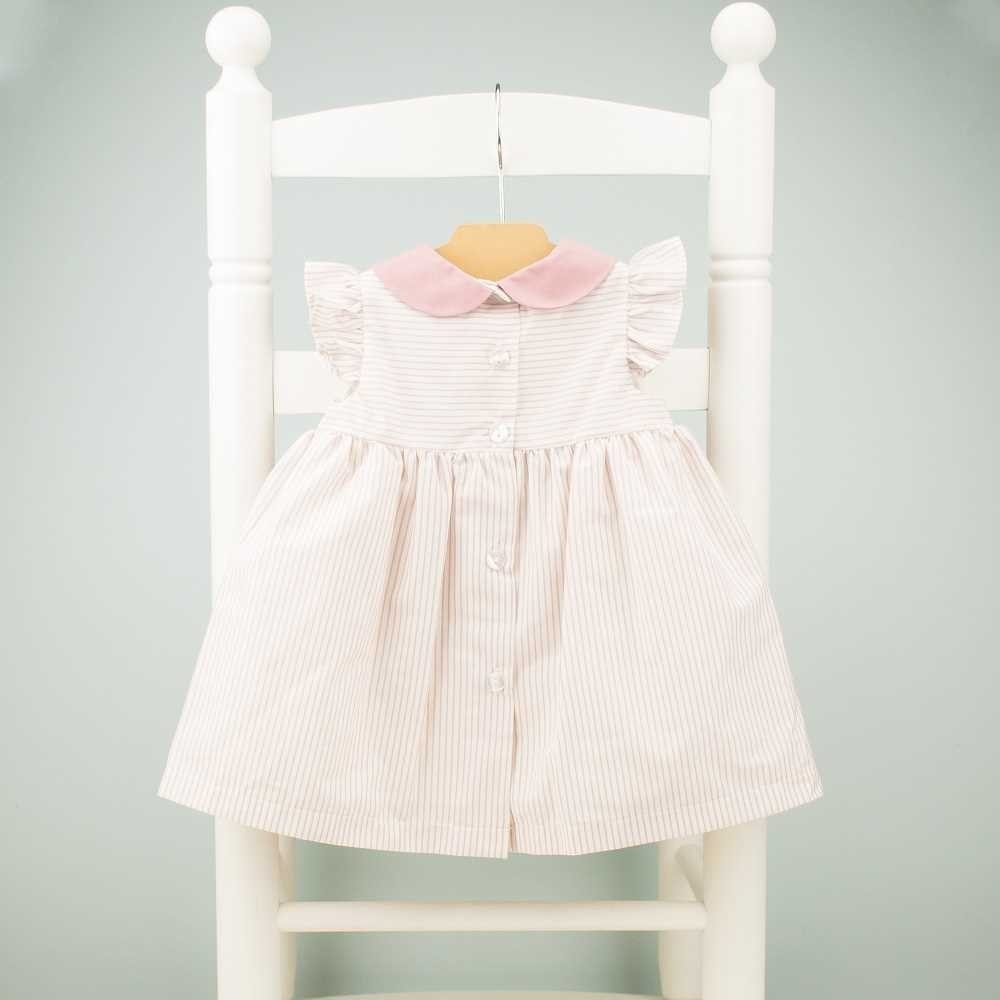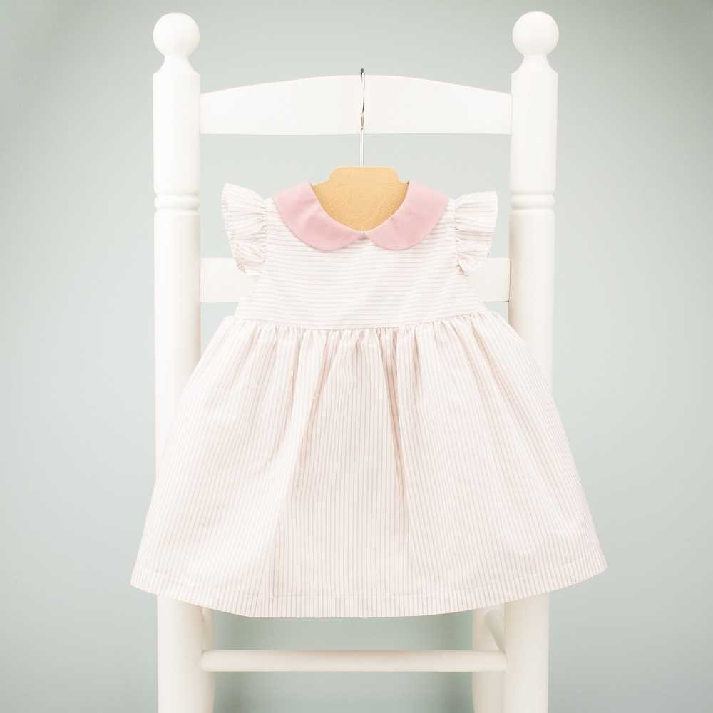 Mädchenkleid – gestreift «Bubikragen» 1-3 J. (rosa/weiss)