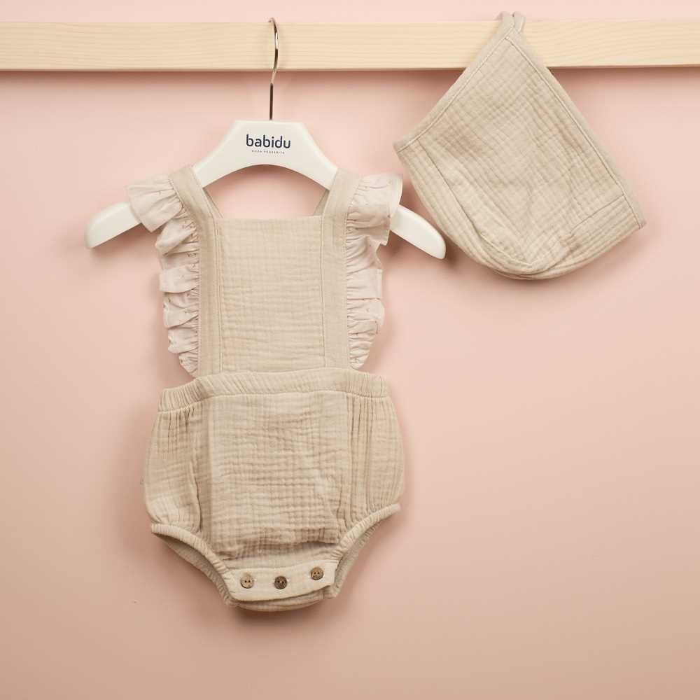 - sommerlicher Babystrampler für Mädchen im Latzshortsdesign